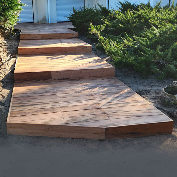 À Biscarrosse, le climat océanique impose des matériaux résistants à l’humidité, au soleil et au sel. Nous sélectionnons des bois reconnus pour leur durabilité, comme le pin traité classe 4, le bois exotique, le chene ou le composite. Chaque lame est posée avec soin, dans le respect des normes de ventilation et d’évacuation d’eau, pour garantir une longévité maximale à votre terrasse. Des visserie inox sont utilisée.